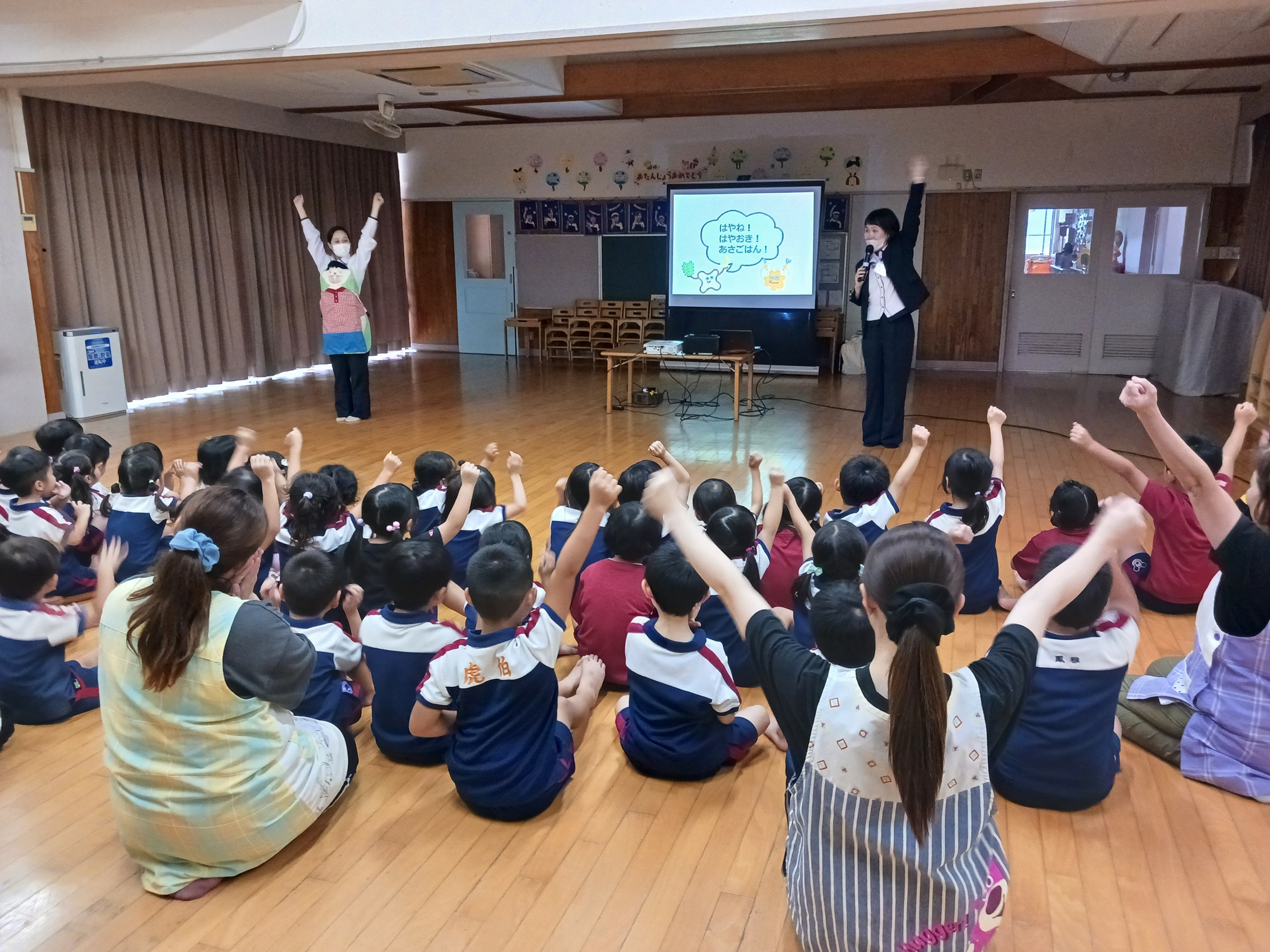この日は新入社員が同行もしていたため話す側もいつも以上に緊張しましたが、園児たちの楽しんでいる様子を見て緊張がほぐれました☆