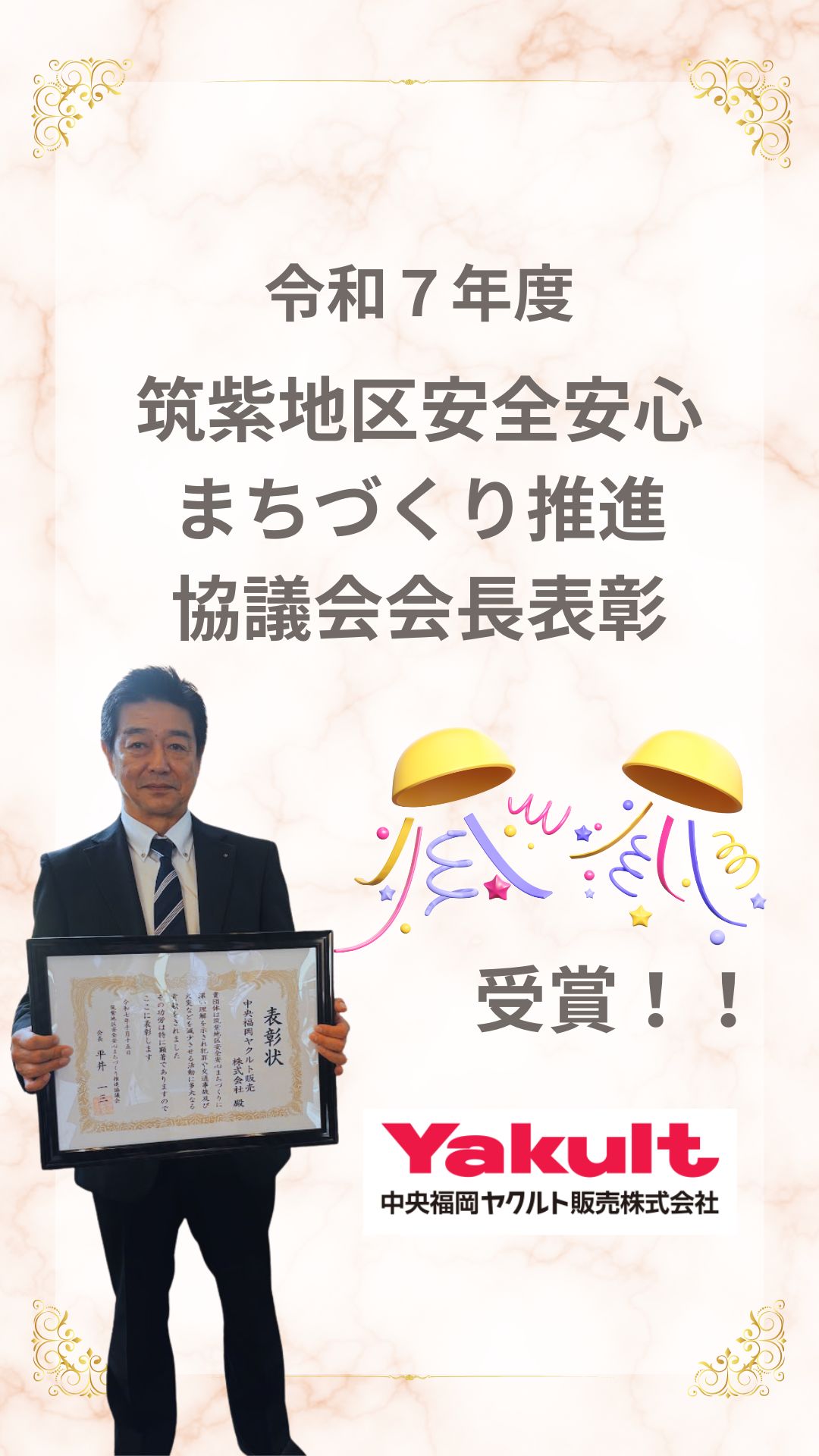 筑紫地区安全安心まちづくり推進協議会会長表彰受賞!!