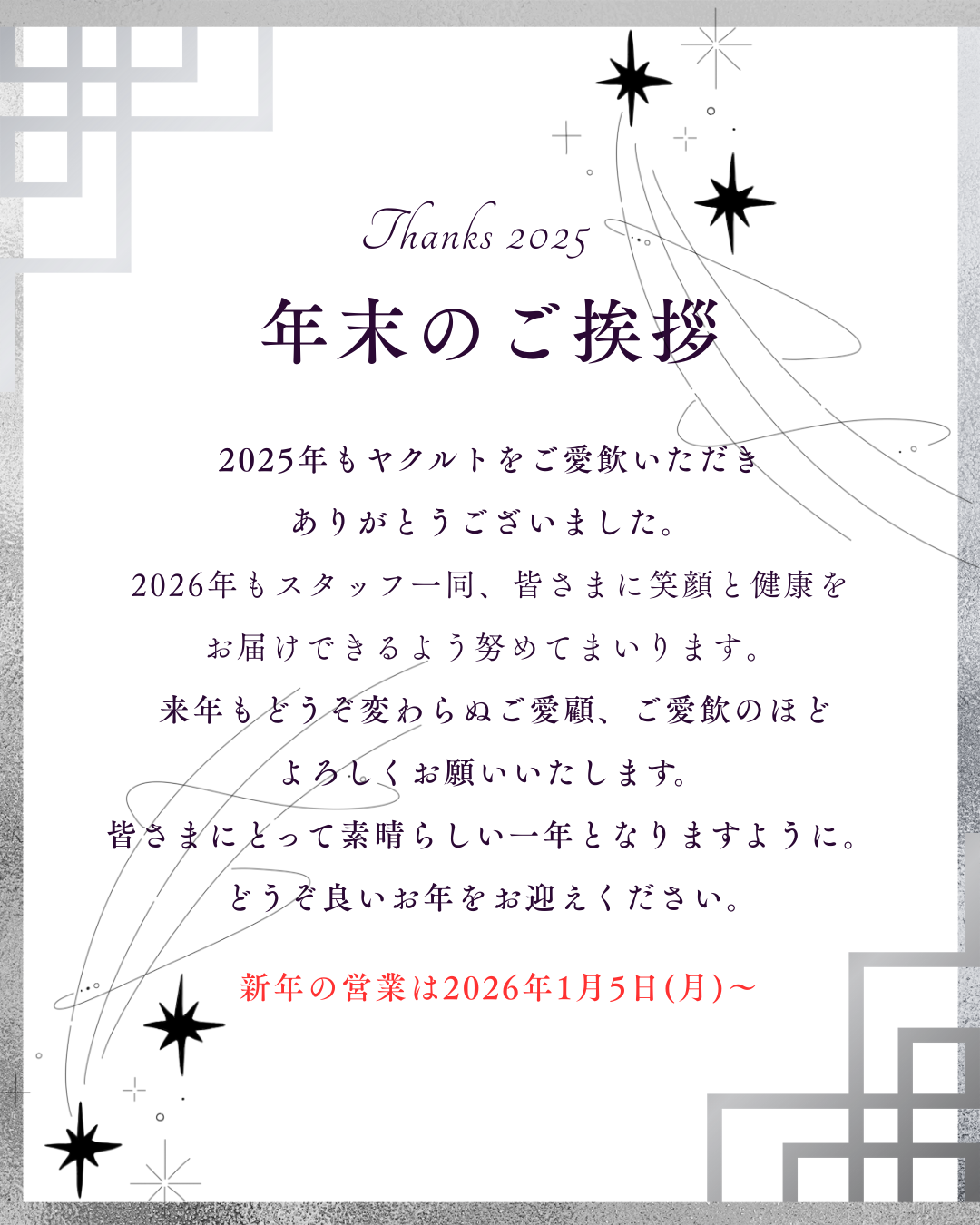 【年末年始の営業について】