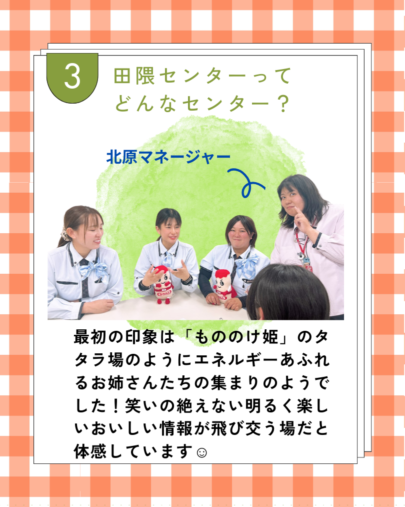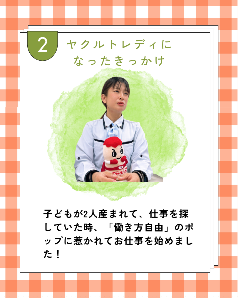 ホーム > お知らせ・イベント > ヤクルトレディインタビューvol.3田隈センター②