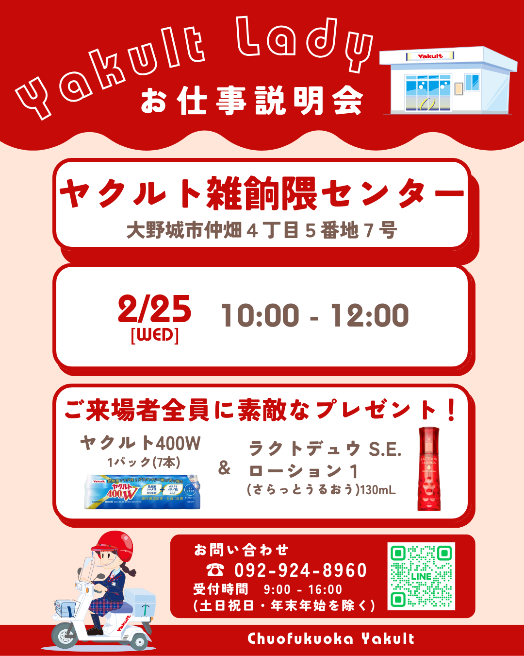ホーム > お知らせ・イベント > ヤクルトレディお仕事説明会開催🎈